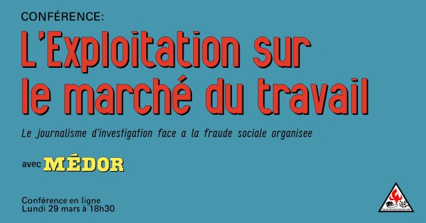 Le Cercle du Libre Examen et Médor vous invitent à une conférence en ligne ce lundi 29 mars pour discuter de l’exploitation au travail produite lorsque des entreprises manipulent, brisent, exploitent leurs employé.e.s ou sous-traitants et se jouent de la législation sociale. Nous aurons également l’occasion d’aborder les défis et pratiques du journalisme d’investigation.