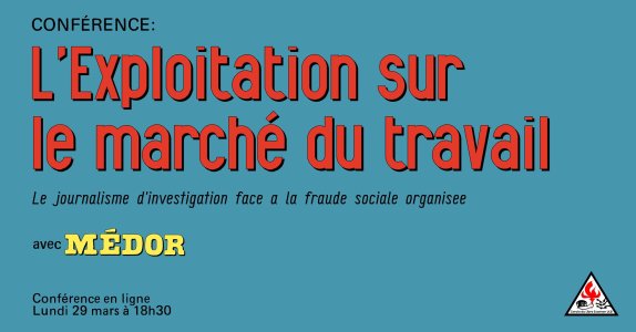 Le Cercle du Libre Examen et Médor vous invitent à une conférence en ligne ce lundi 29 mars pour discuter de l’exploitation au travail produite lorsque des entreprises manipulent, brisent, exploitent leurs employé.e.s ou sous-traitants et se jouent de la législation sociale. Nous aurons également l’occasion d’aborder les défis et pratiques du journalisme d’investigation.